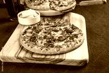 신선한 재료로 만든 토핑을 올린 맛있는 이탈리아 전통 피자