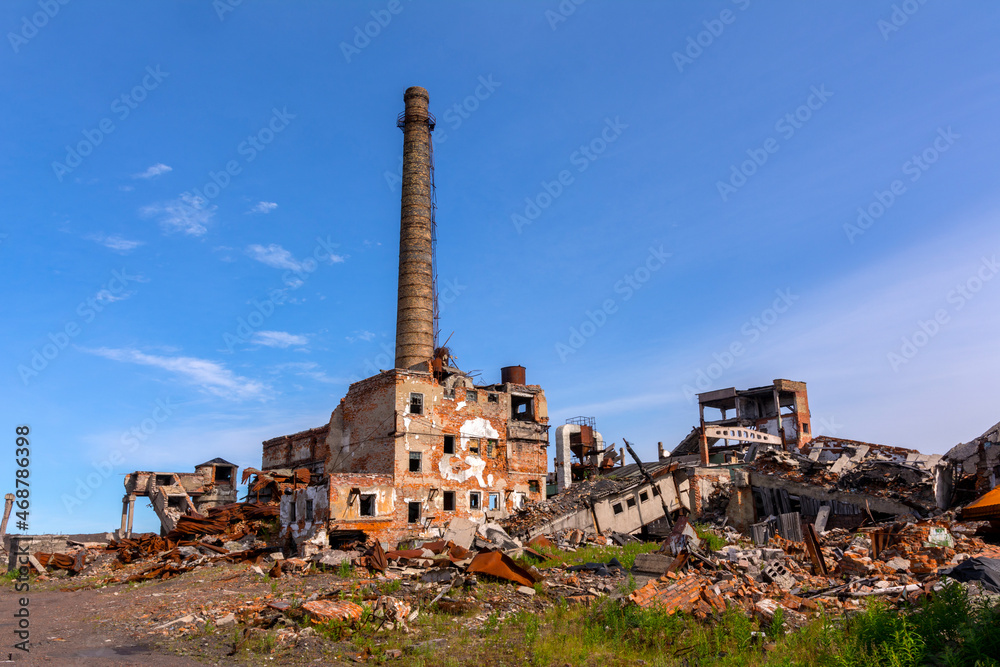 The territory of the former coal mine.Abandoned mine in the former settlement of Khalmer-Yu, Vorkuta, Russia.