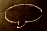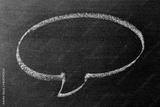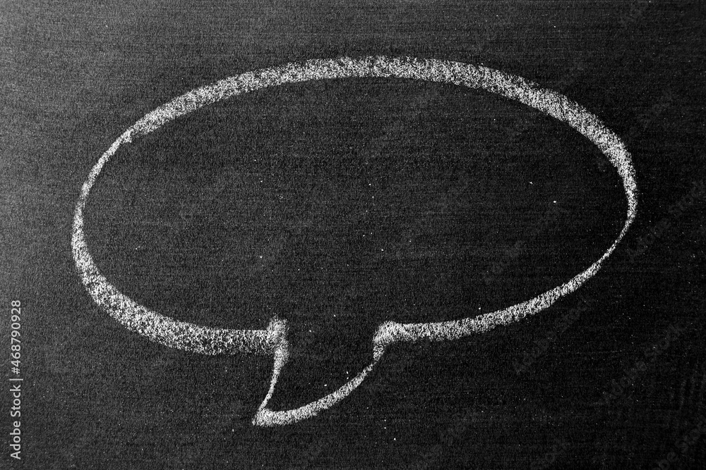 White color chalk hand drawing in round bubble speech shape with blank space on blackboard or chalkboard background