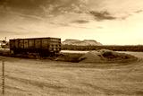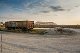 Rail freight car - loaded with crushed limestone extracted in the quarry