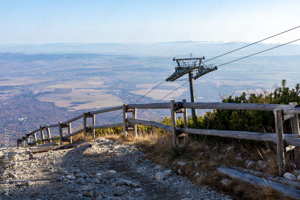 Slovakia. Scenic autumn view of beautiful slovakia landscape with cable car in High Tatras.