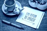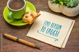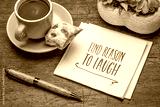 find reason to laugh - inspirational handwriting on a napkin with a cup of coffee, positive mindset and personal development concept