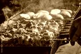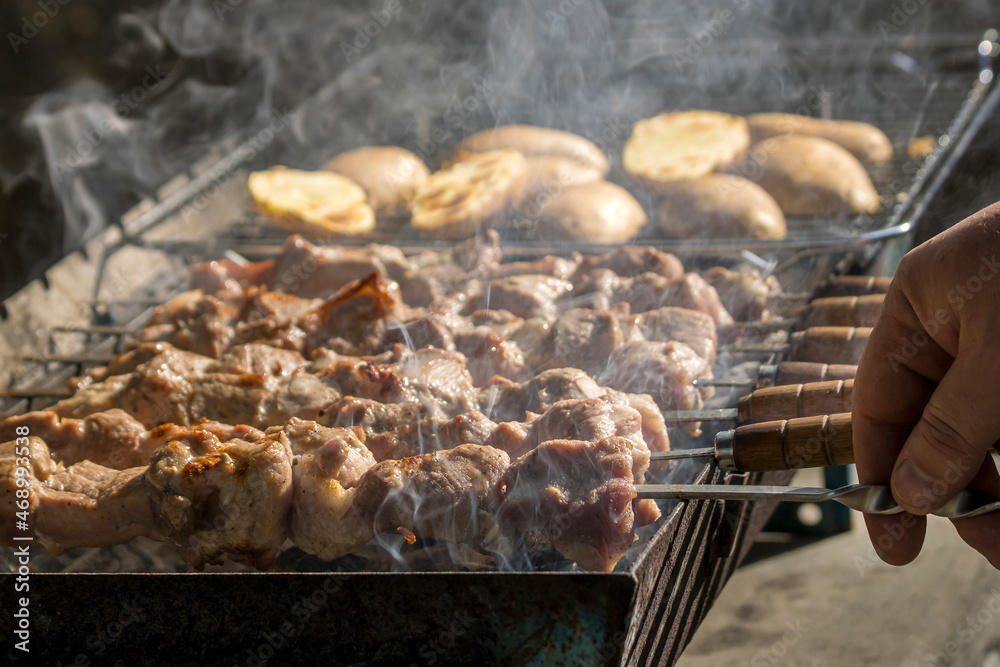 Meat skewers grilled on barbecue grill