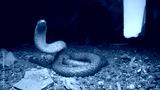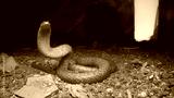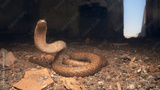 Wild western brown snake (Pseudonaja nuchalis) in defensive pose inside derelict, ruined building