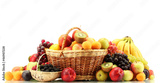 Assortment of exotic fruits and berries in baskets isolated