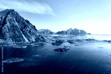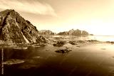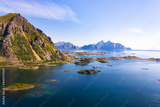 Aerial landscape of Lofoten Islands in Norway with mountains and ocean