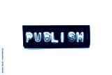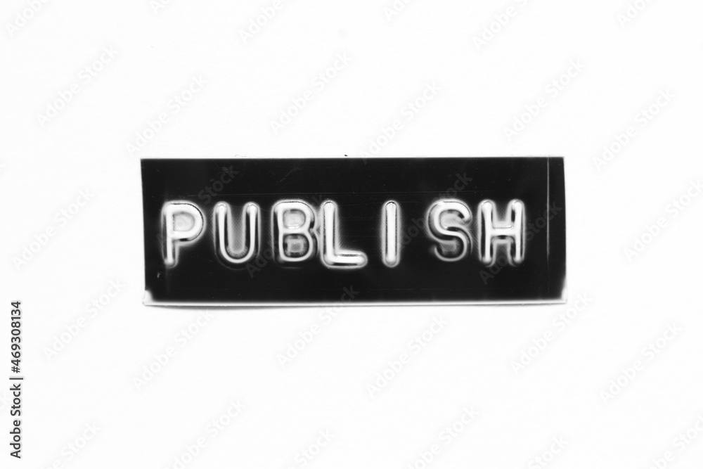 Black color banner that have embossed letter with word publish on white paper background