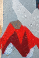 Closeup of colorful gray, beige and red urban wall texture. Modern pattern for wallpaper design. Creative modern urban city background for advertising mockups. Minimal geometric style, solid colors