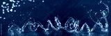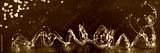 Christmas background. Twisted golden xmas lights wire on sparkly festive red background. Copy space. Merry Christmas or Happy New Year card. Wide web banner