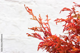 Thuja orientalis red branches on white background. Coniferous evergreen plant.