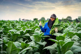 Agriculture, Female farmers happy and thumbs up in tobacco fields.