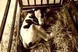 Calf on a farm in Ternopil region, Ukraine. July 2017