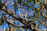Ring-shaped lemurs ( lemurs catta ) sit on a tree branch in Anja Nature Reserve, Madagascar.