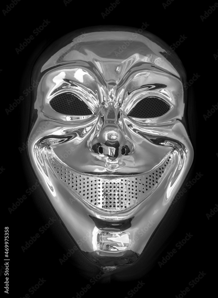 Metallic Silver Ghost Mask Isolated Against Black Background