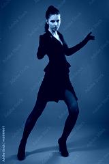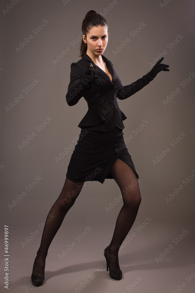 Spy girl in a black shoots a gun
