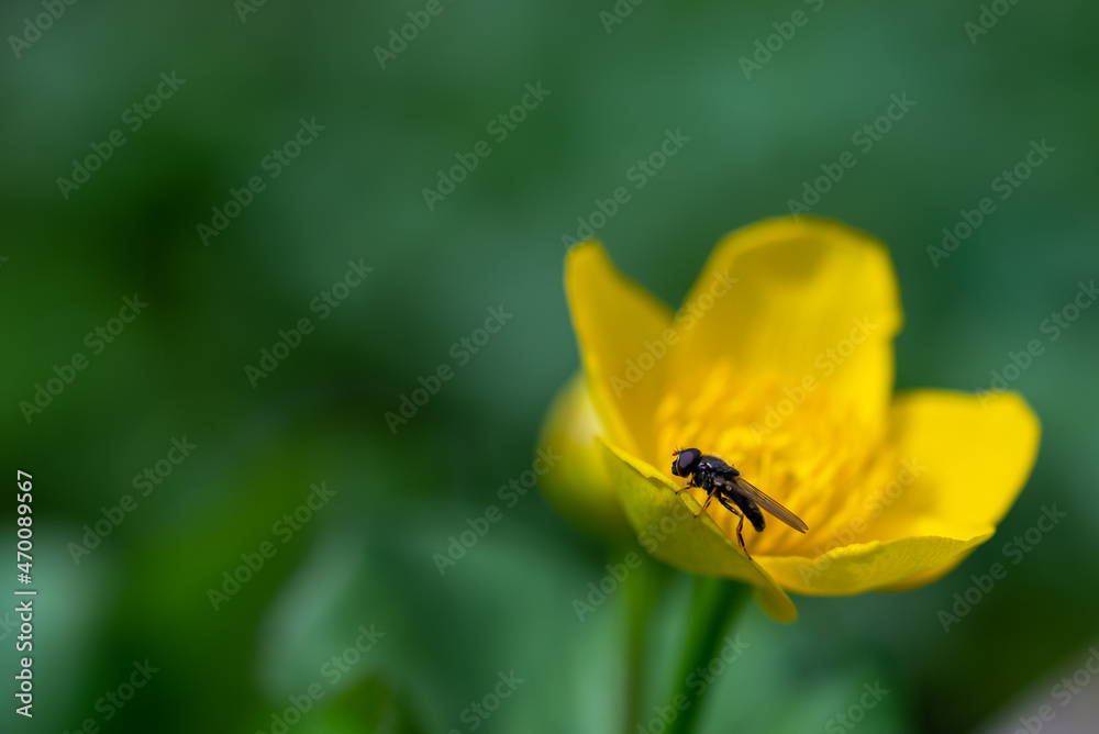 Caltha palustris czyli knieć błotna z owadem.