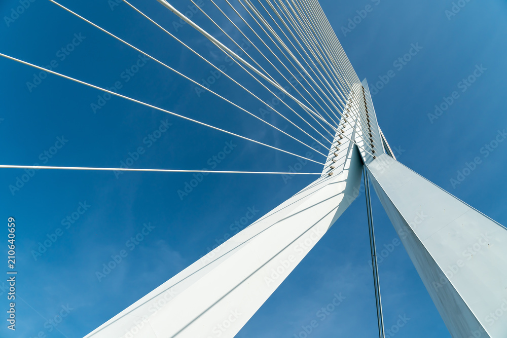 Aerial view of the most beautiful Portuguese bridge in Lisbon, Vasco da Gama. Morning foggy seascape.