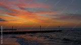 glowing sky after sunset on the beach of Kolobrzeg on the Polish Baltic coast