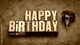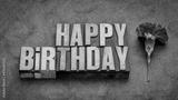 Happy Birthday greeting card in vintage letterpress wood type with a carnation flower against handmade bark paper