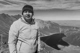 Hiker overlooking lake in mountains