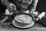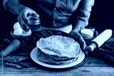 hands of mexican man cooking buñuelos, recipe and ingredients of traditional dessert for Christmas in Mexico