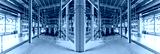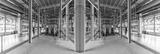 Panoramic mirror gray photo of pipes and tanks. Chemistry and medicine production. Pharmaceutical factory