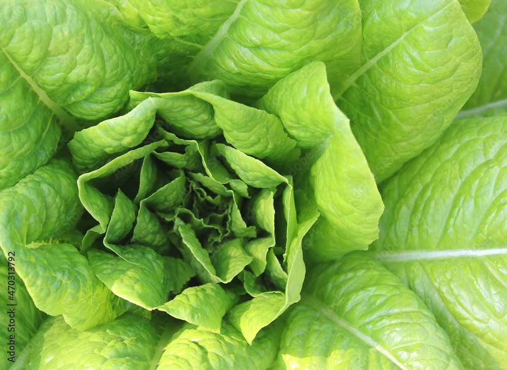 Lettuce bush with juicy ripe lettuce among large lettuce leaves and small lettuce leaves