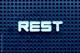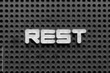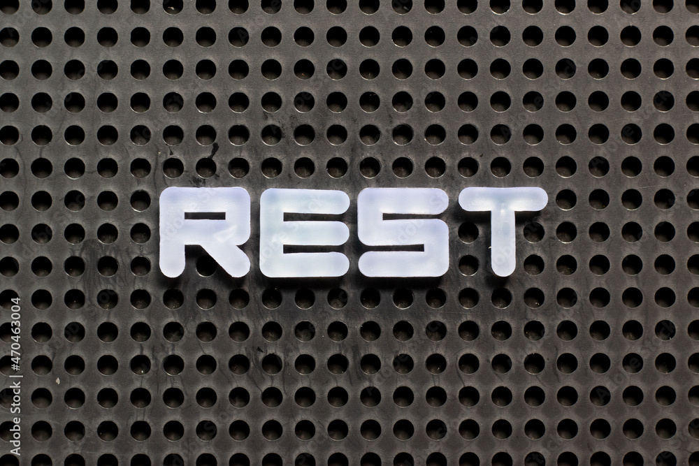 White color letter in word rest on black pegboard background