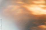 Light flare filter. Blur glow overlay. Sunlight reflection. Bokeh radiance. Defocused orange white color flames texture abstract background.