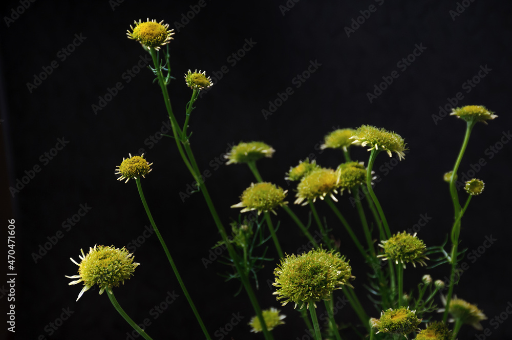 Many meadow flowers on dark background