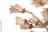 Elegant fragile dried little flowers light vintage brown color on white bokeh background