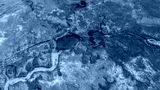 Amazing landscape with a lake and river in the middle of the desert with shades in the water of blue and turquoise green, mountains are distinguished, and the wide desert. Poza Azul, Cuatrociénegas.