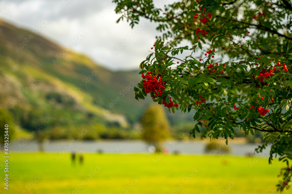 Drzewo jarzębiny w Angielskim Lake Dystrykt, zbliżenie.