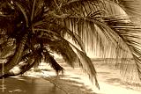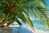 Wild tropical beach with coconut trees and other vegetation, white sand beach, Caribbean Sea, Panama