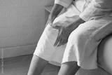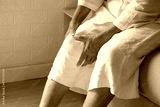 Elderly Asian woman holding a leg that is painful from varicose veins or from osteoarthritis, Various illnesses of the elderly and good health concept.