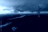 Wind turbines farm at sunrise, Oiz mountain, Basque Country, Spain