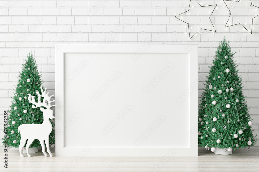 Mockup poster photo frame with christmas decoration.