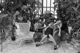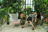 Strangled beautiful woman in a greenhouse. Simulation of the crime scene.....