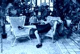 Strangled beautiful woman in a greenhouse. Simulation of the crime scene.....