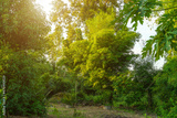green bamboo trees standing together in the bush Natural forest background with copy space.