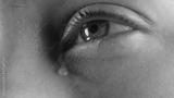 Close-up photo of the woman's tearing eye