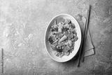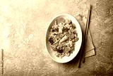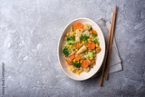 Traditional dish of Asian cuisine: noodles with vegetables