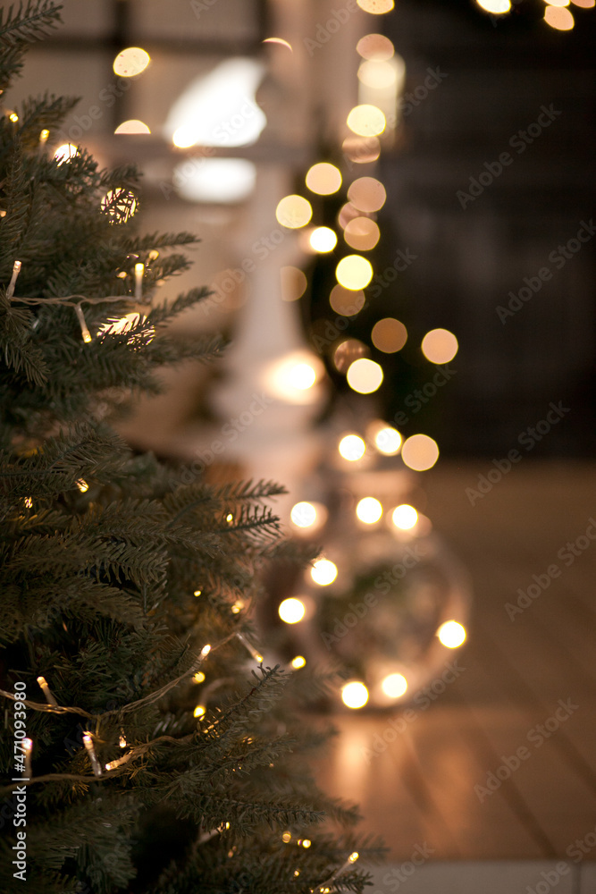 christmas tree with lights bokeh background