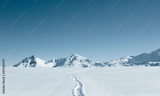 Fußspur in tiefem Schnee in Winterlandschaft