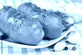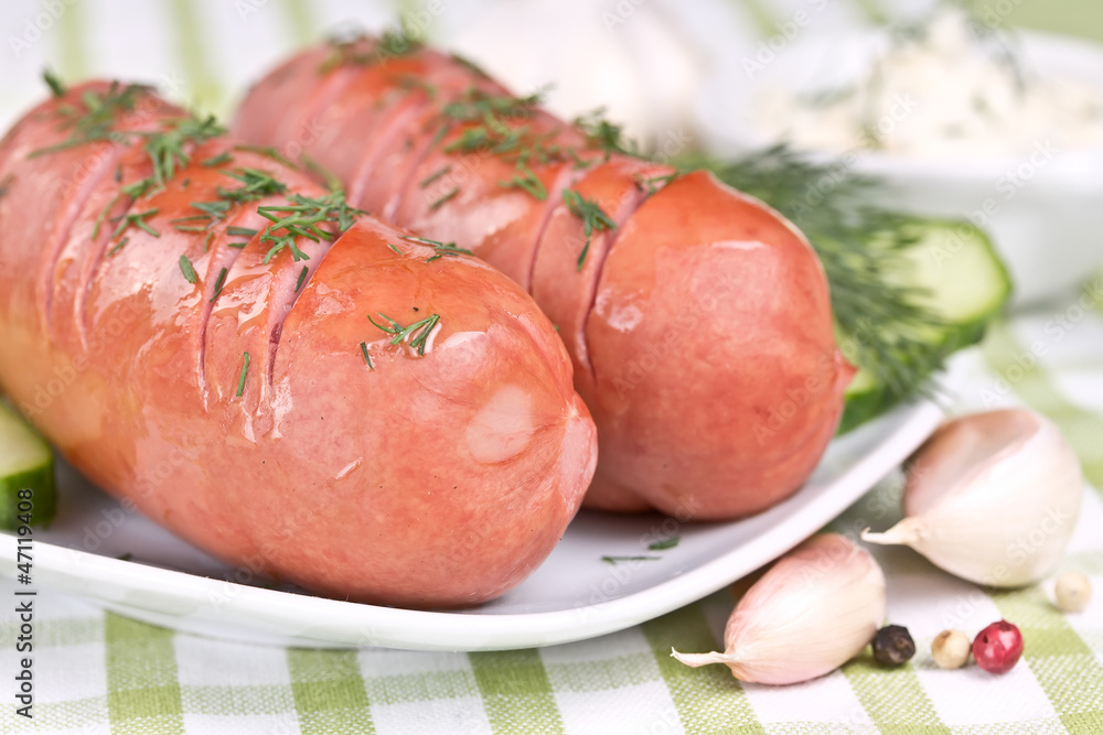 grilled sausage with cucumber slices