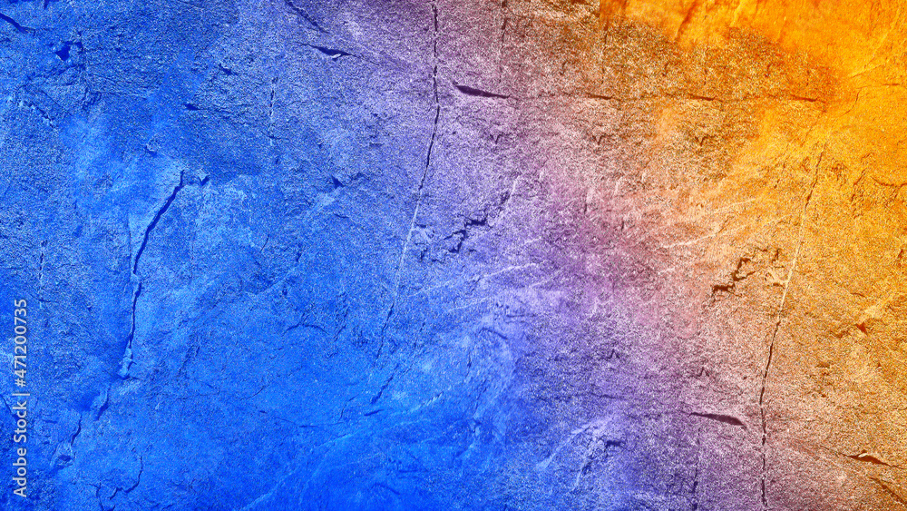 Blue orange gradient background. Toned rough texture. Painted wall background with copy space for design.