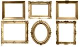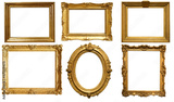 Gold frame for a picture in a classic baroque style on a white blank background.