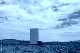 A lonely pink refrigerator stands in the Namib desert against the backdrop of a cloudy sky