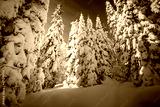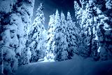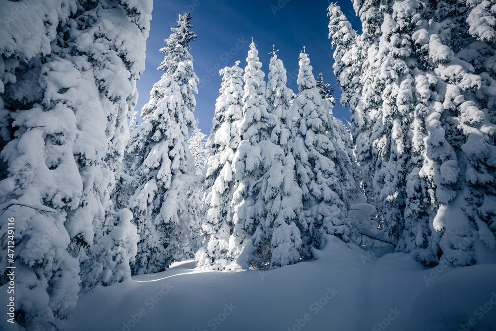 Exotic view of snow-capped forest on frosty day. Carpathian mountains, Ukraine, Europe.