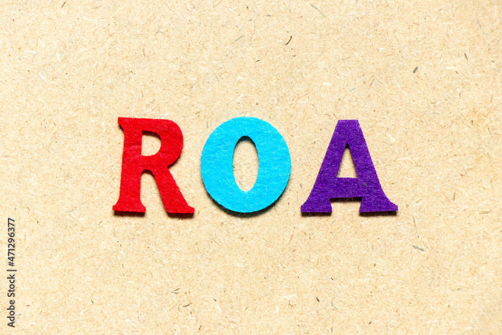 Color cloth alphabet letter in word ROA (Abbreviation of Return on assets) on wood background
